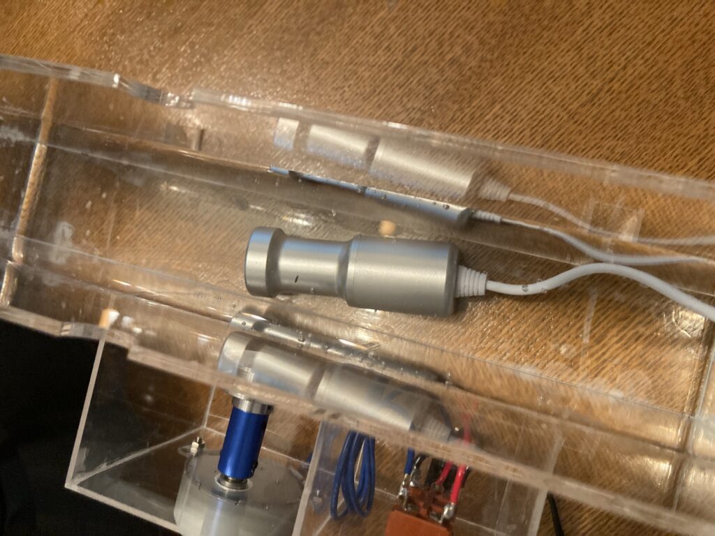 振動子のテスト。アルミフォイルを用いたキャビテーションテストが推奨されています。
